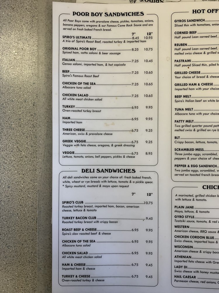 Spiro's Deli in Glenview offers a variety of delicious sandwiches, with standout options like the famous Poorboy and the flavorful Bomber. Customers rave about the friendly staff and the fresh, high-quality ingredients used in every dish. The cozy, no-frills atmosphere adds to the charm of this neighborhood gem, making it a favorite spot for locals and visitors alike. From the crispy fries to the perfectly grilled meats, every item on the menu is prepared with care and attention to detail. Whether you're in the mood for a classic sandwich or a hot, hearty meal, Spiro's Deli has something for everyone. Don't miss out on this hidden gem in Glenview - it's definitely worth a visit for a delicious meal that will leave you coming back for more.